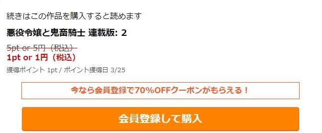 しかし、初回登録を既に完了した方は1冊分70%OFFのクーポンをもらえません。