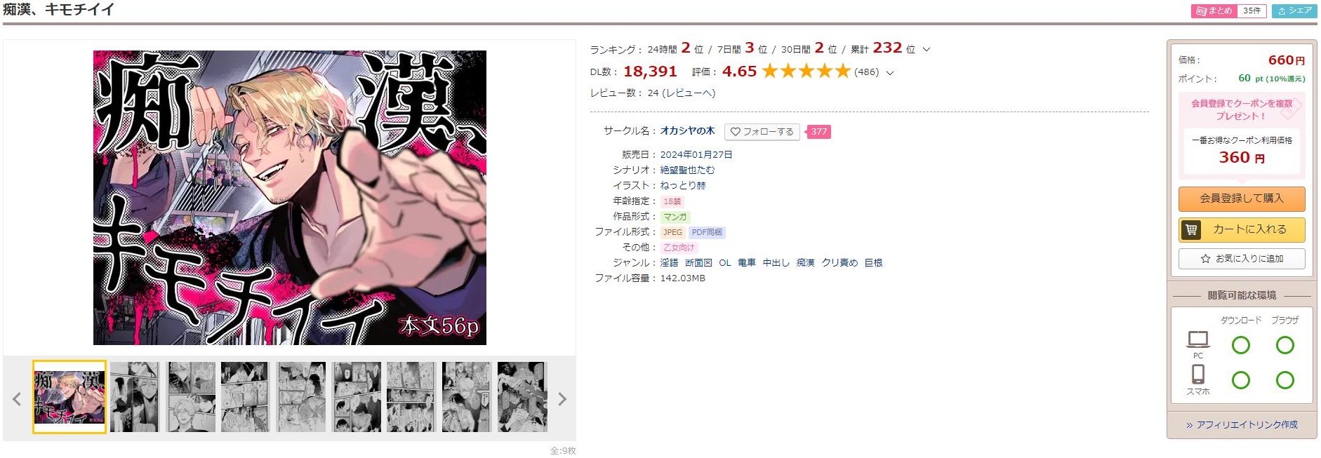 DLsiteで漫画『痴○、キモチイイ』を読む方法を解説します。