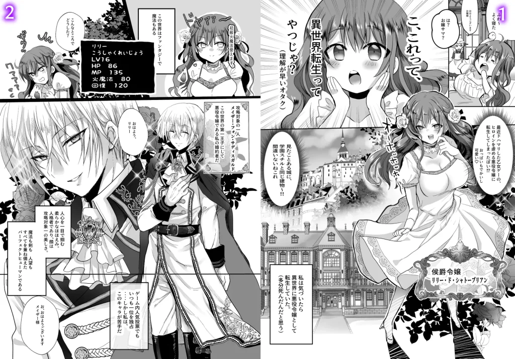 | あらすじ | 平凡でちょっとオタクな主人公が、大好きな乙女ゲー世界に悪役令嬢として異世界転生してしまう。マイナーなモブ推しだったため、婚約者の超絶イケメン王子と婚約破棄しょうと頑張る主人公だったが…。 引用元:DLsite |