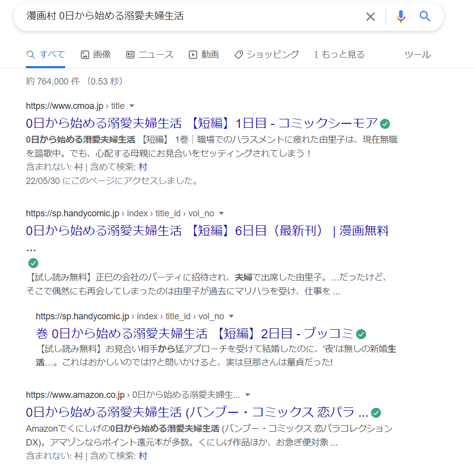 漫画村で漫画『0日から始める溺愛夫婦生活』は読めるか調査した結果はこちらになります。